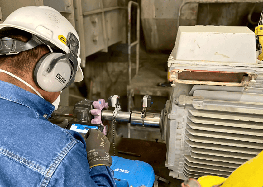 Alineamiento de ejes y poleas con equipo laser y reloj comparador